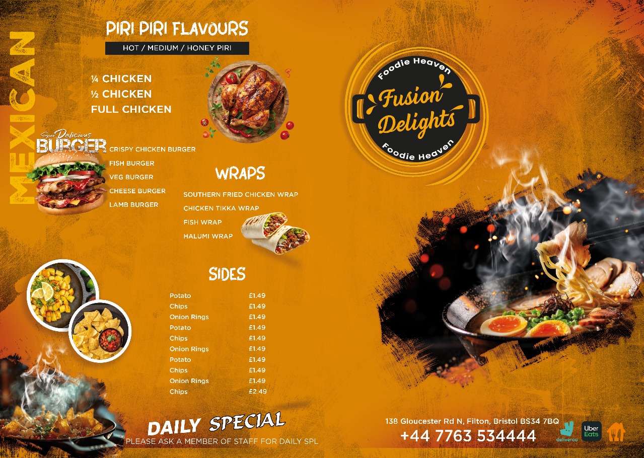 Fusion Delights is a culinary concept or brand (depending on the context) that brings together flavors, ingredients, and cooking techniques from multiple cultures to create unique, innovative, and exciting dishes. It reflects the modern global palate where traditional boundaries are blended for a rich dining experience.